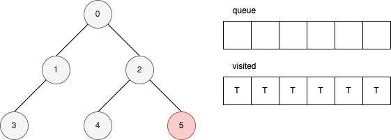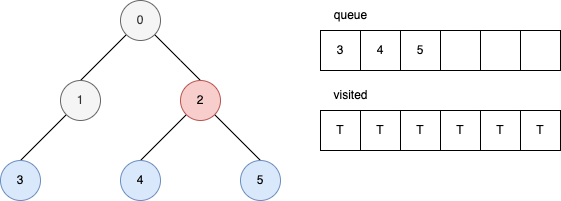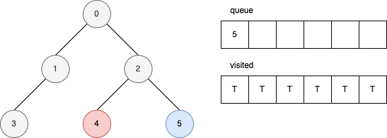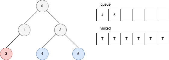 下面的範例顯示,在每一個步驟時,queue 和 visited 內部的變化。